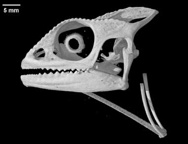 Three-dimensional volumetric renderings of the skull with the scleral ring, hyoid and jaw removed, and of the isolated left mandible. All are less than 2mb.