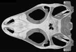 Three-dimensional volumetric renderings of the skull with the scleral ossicles, hyoid and jaw removed, and of the isolated left mandible. All are less than 2mb.