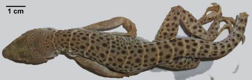 | The coloration of Gambelia wislizenii varies during the day, becoming dark when the animal is cool. Coloration also varies during the year: female leopard lizards take on a dramatic coloration during the breeding season. |