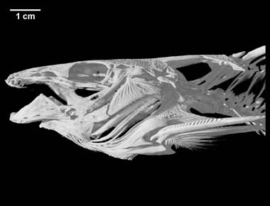 This specimen was collected from Cano Caripo, Venezuela by B. Chernoff, J. Fernandez and O. Castillo on 16 March 1987. It was made available to The University of Texas High-Resolution X-ray CT Facility for scanning by Dr. John Lundberg of the Academy of Natural Sciences, Philadelphia. Funding for scanning was provided by a National Science Foundation grant (DEB-0089612) to Dr. Lundberg. Funding for image processing was provided by an NSF Digital Libraries Initiative grant to Dr. Timothy Rowe of The University of Texas at Austin.
