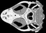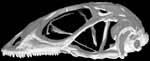 Three-dimensional volumetric renderings of the skull with the scleral ossicles, hyoid and jaw removed, and of the isolated left mandible. All are 2mb or less.